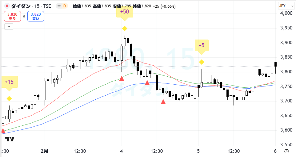 【2025年2月6日】(1980)(ダイダン)を利益確定しました。(プッシュアロー・アドバンス)