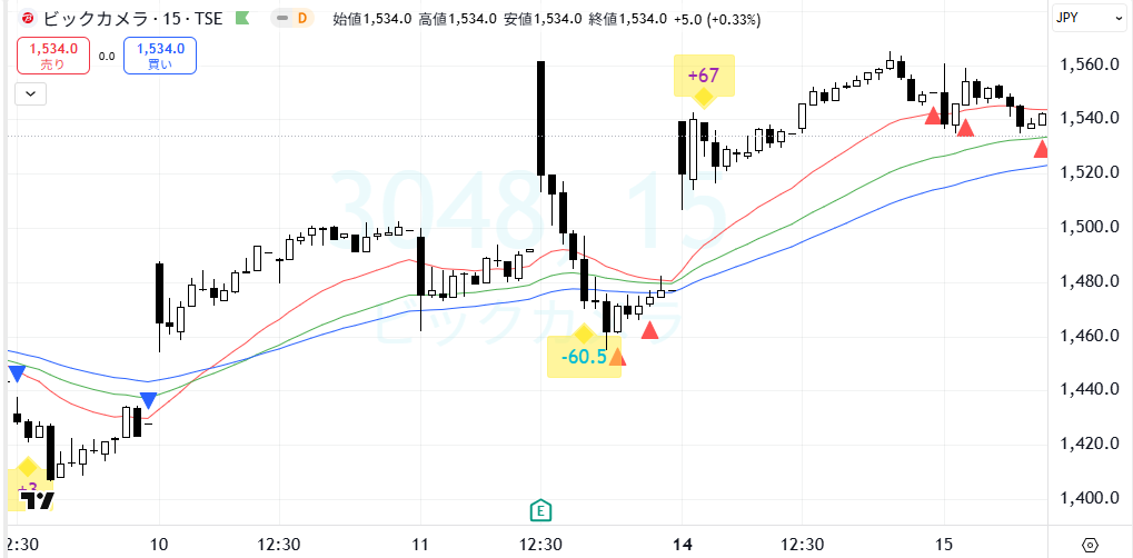 【2025年4月15日】(3058)(ビックカメラ)を利益確定しました。(プッシュアロー・アドバンス)