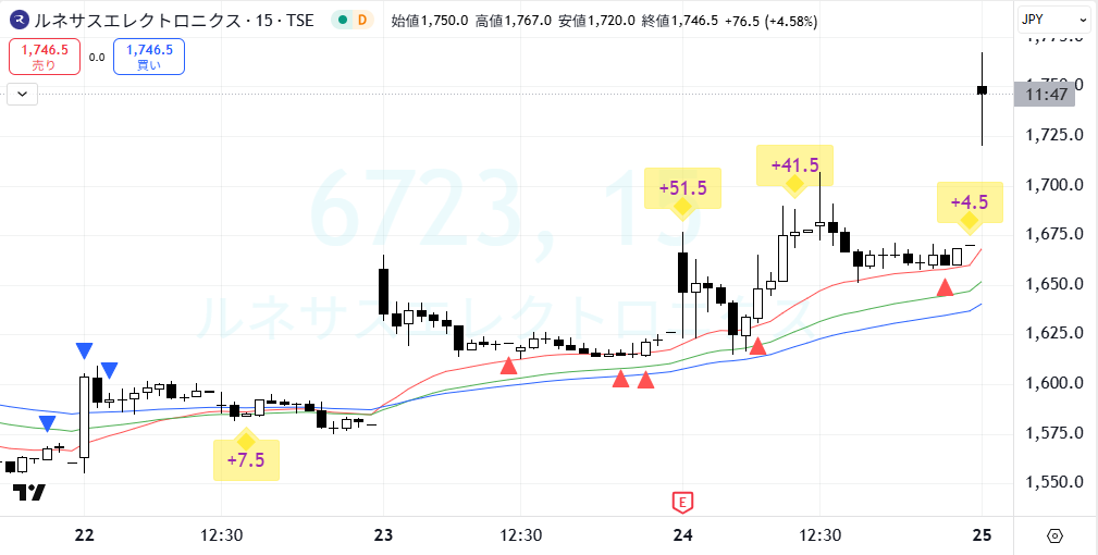 【2025年4月25日】(6723)(ルネサスエレクトロニクス)を利益確定しました。(プッシュアロー・アドバンス)