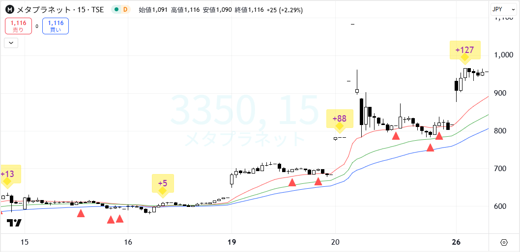 【2025年5月27日】(3350)(メタプラネット)を利益確定しました。(プッシュアロー・アドバンス)