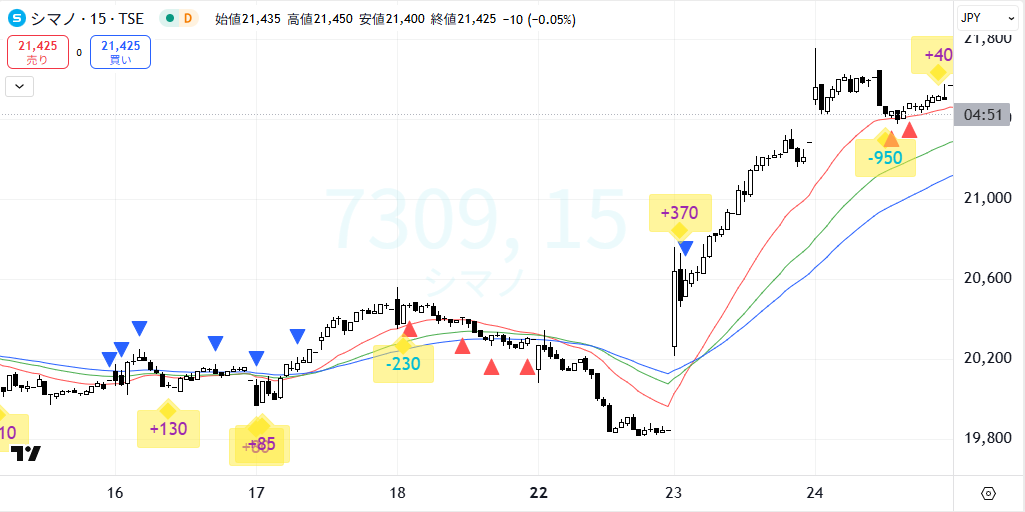 【2025年7月25日】(7309)(シマノ)を利益確定しました。(プッシュアロー・アドバンス)