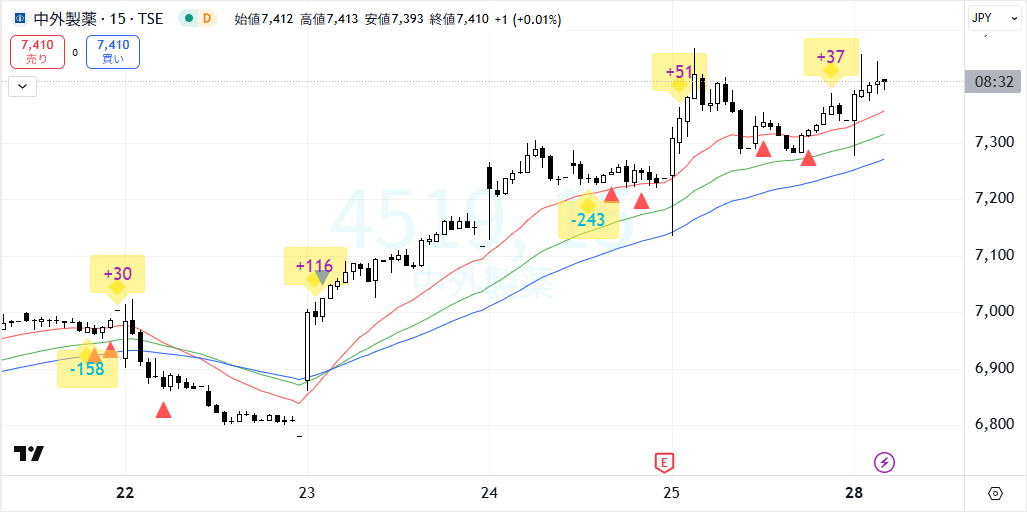 【2025年7月28日】(4519)(中外製薬)を利益確定しました。(プッシュアロー・アドバンス)