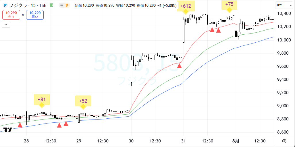 【2025年8月1日】(5803)(フジクラ)を利益確定しました。(プッシュアロー・アドバンス)