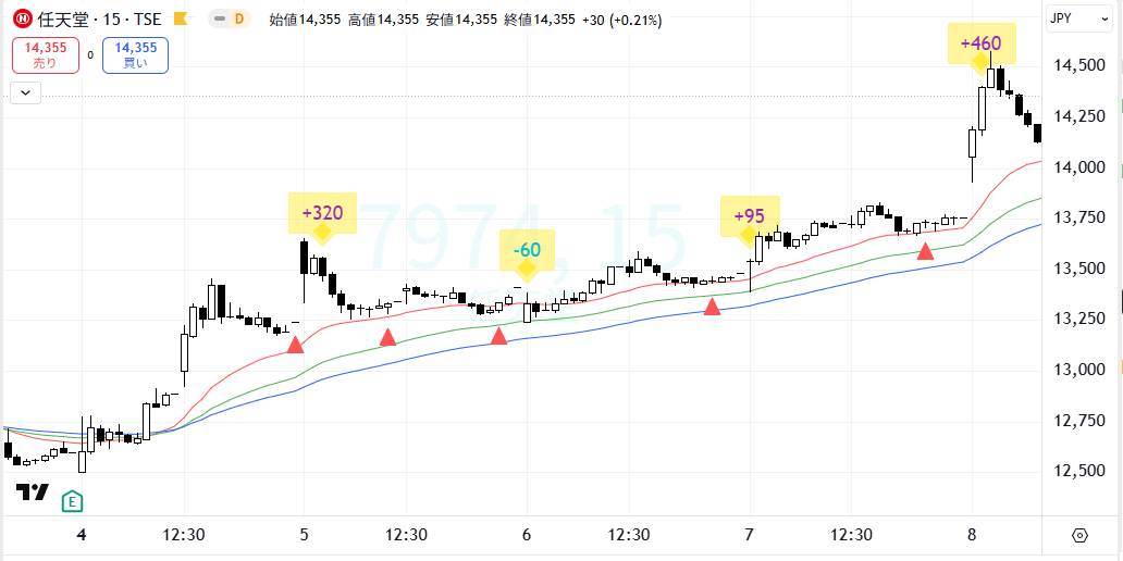 【2025年8月8日】(7974)(任天堂)を利益確定しました。(プッシュアロー・アドバンス)