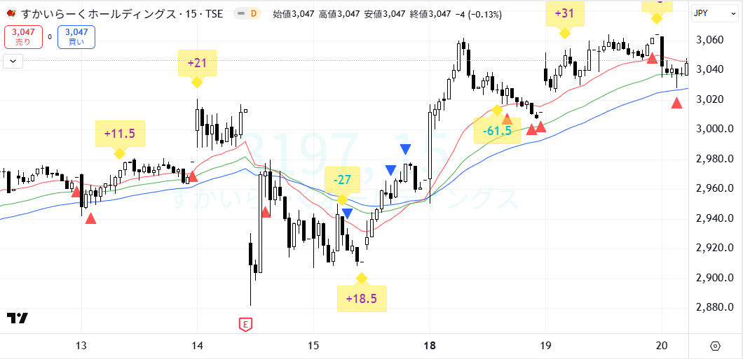 【2025年8月20日】(3197)(すかいらーくホールディングス)を利益確定しました。(プッシュアロー・アドバンス)