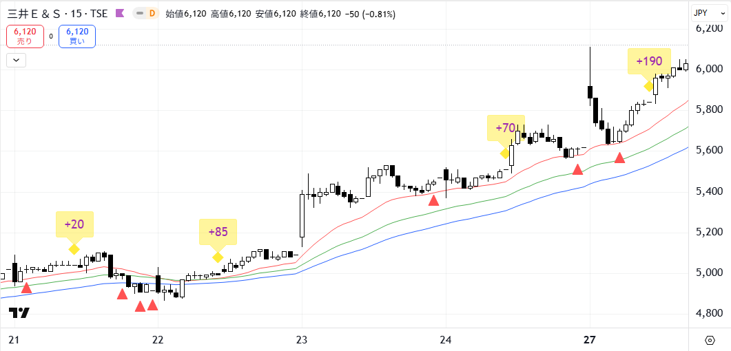 【2025年10月27日】(7003)(三井E&S)を利益確定しました。(プッシュアロー・アドバンス)