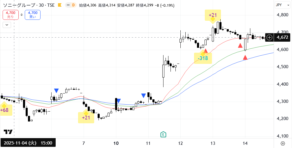 4. 【2025年11月14日】(6758)(ソニーグループ)を利益確定しました。(プッシュアロー・アドバンス)