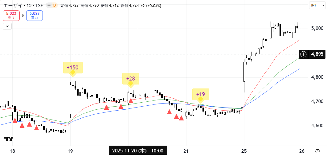 【2025年11月25日】(4523)(エーザイ)を利益確定しました。(プッシュアロー・アドバンス)