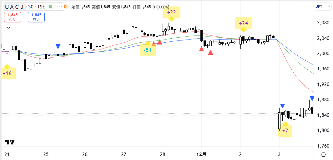 【2025年12月3日】(5741)(UACJ)を利益確定しました。(プッシュアロー・アドバンス)
