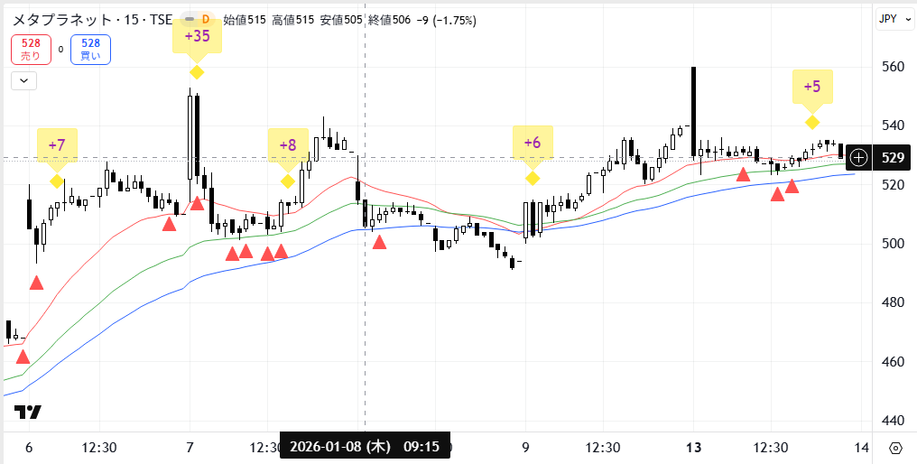 4. 【2026年1月13日】(3350)(メタプラネット)を利益確定しました。(プッシュアロー・アドバンス)