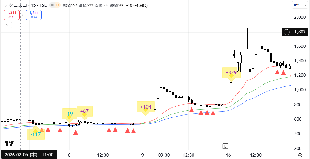 【2026年2月18日】(2962)(テクニスコ)を利益確定しました。(プッシュアロー・アドバンス)