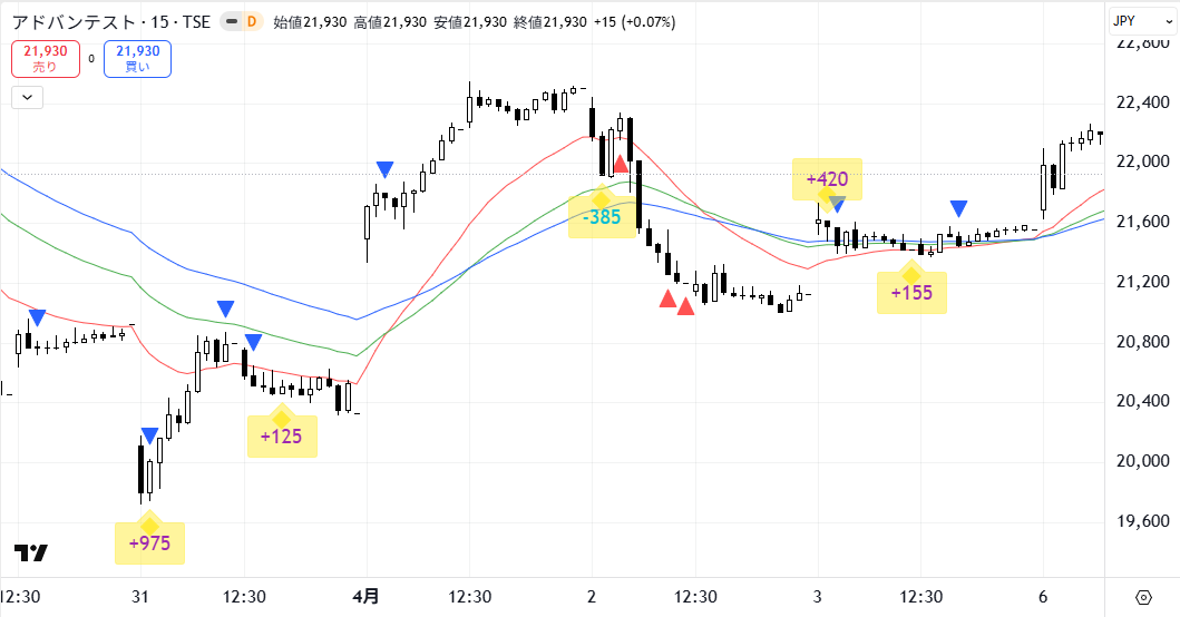 【2026年4月6日】(6857)(アドバンテスト)を利益確定しました。(プッシュアロー・アドバンス)