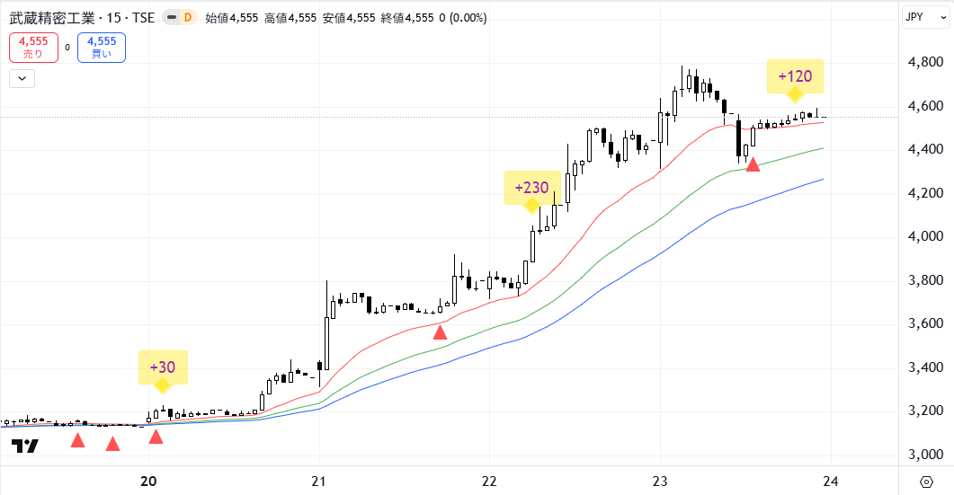 【2026年4月23日】(7220)(武蔵精密工業)を利益確定しました。(プッシュアロー・アドバンス)